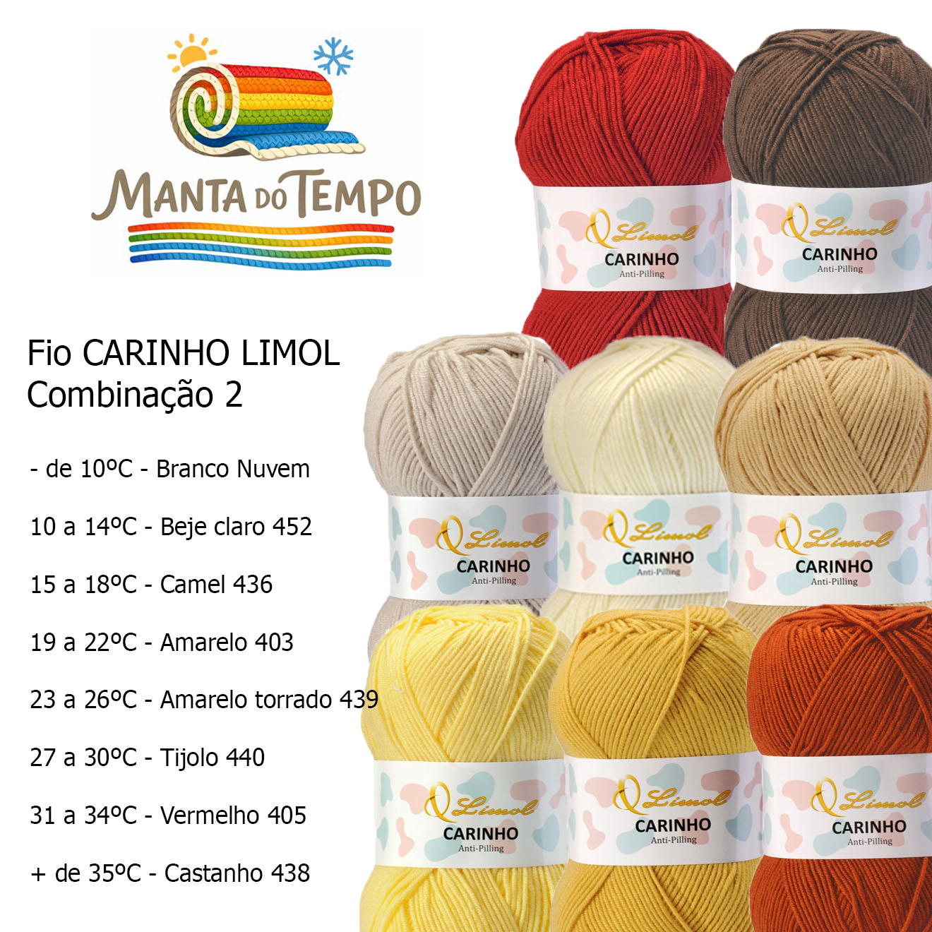 | Quantidade de Novelos | 1 CADA COR, 2 CADA COR, 3 CADA COR, 4 CADA COR |