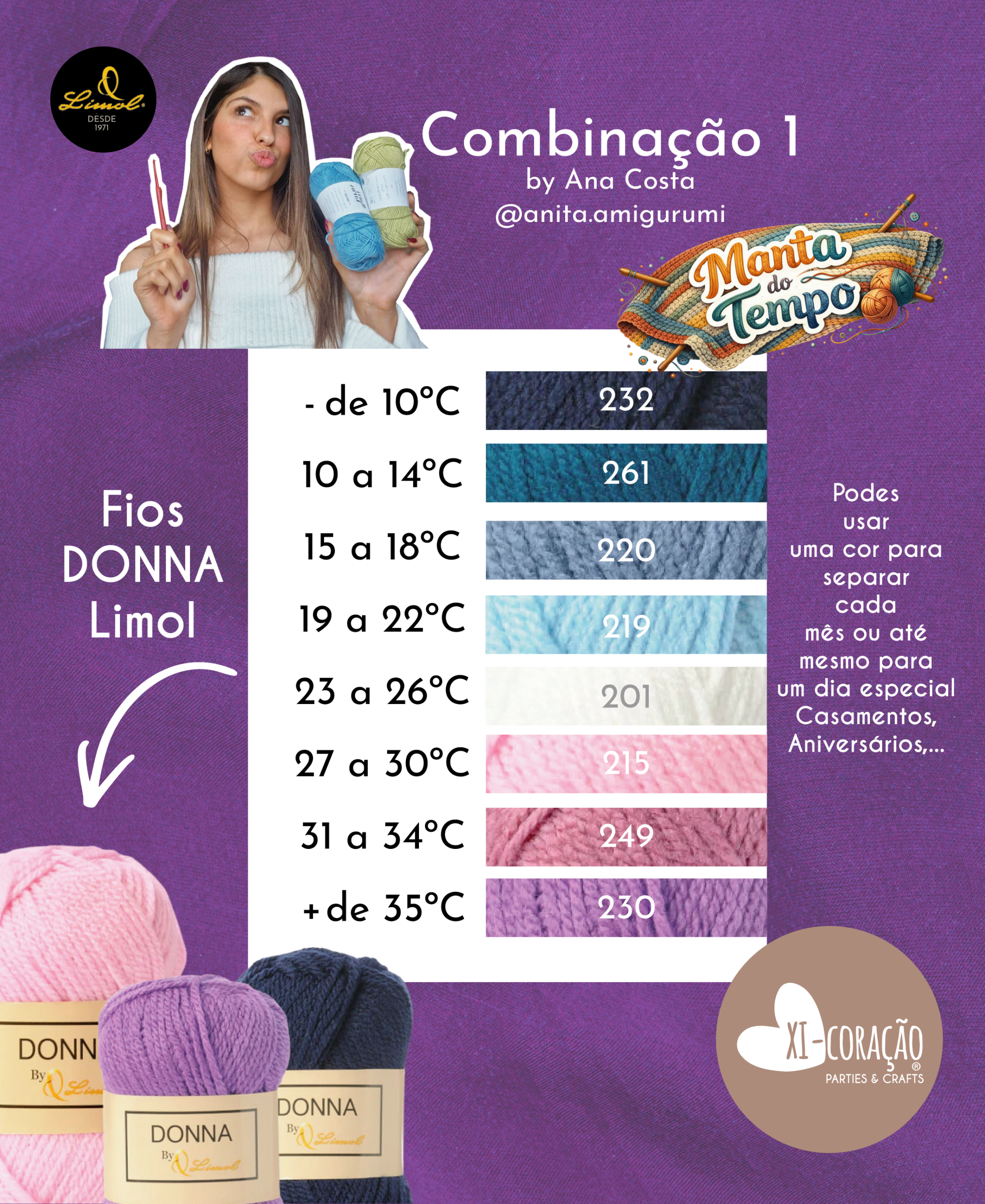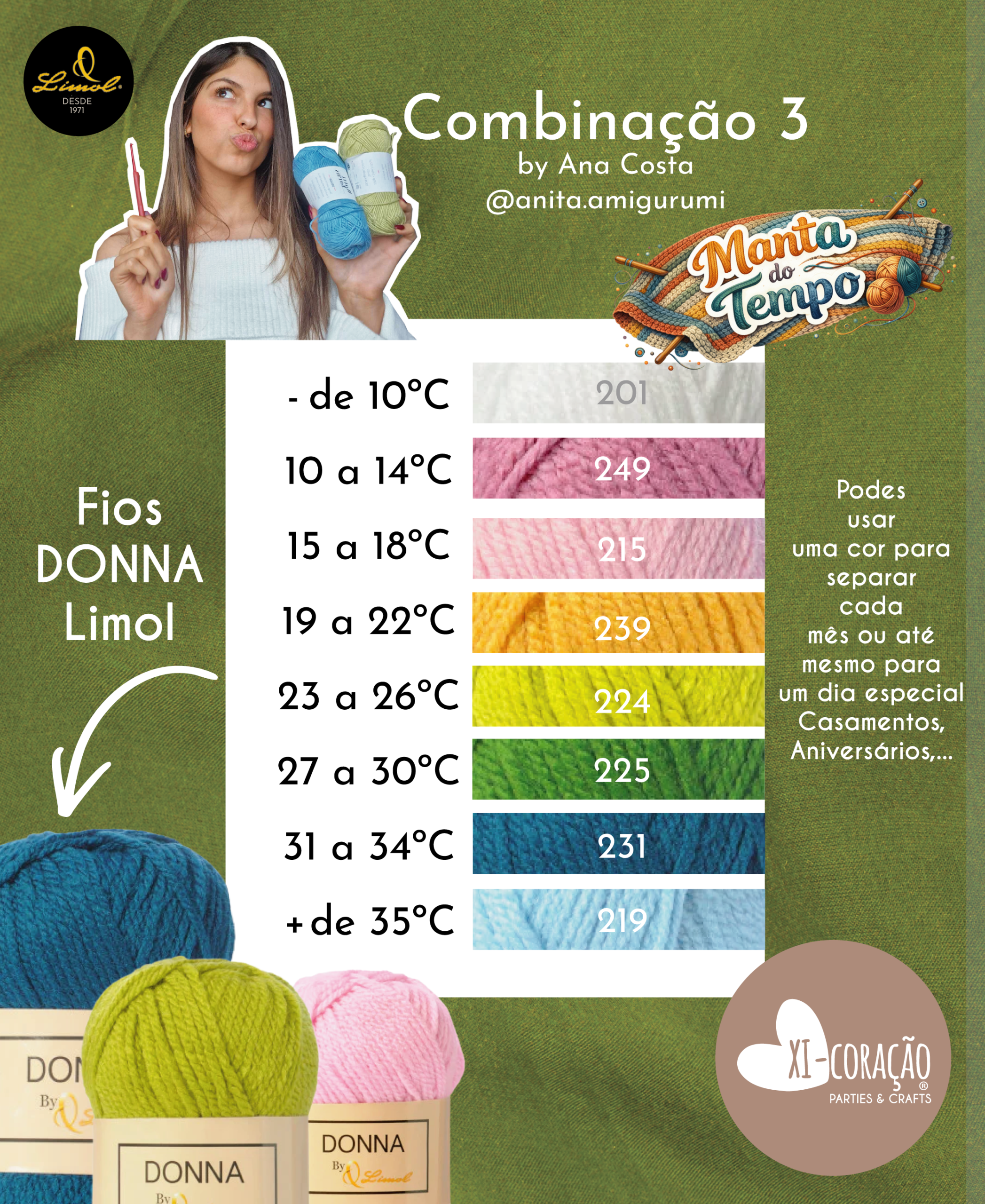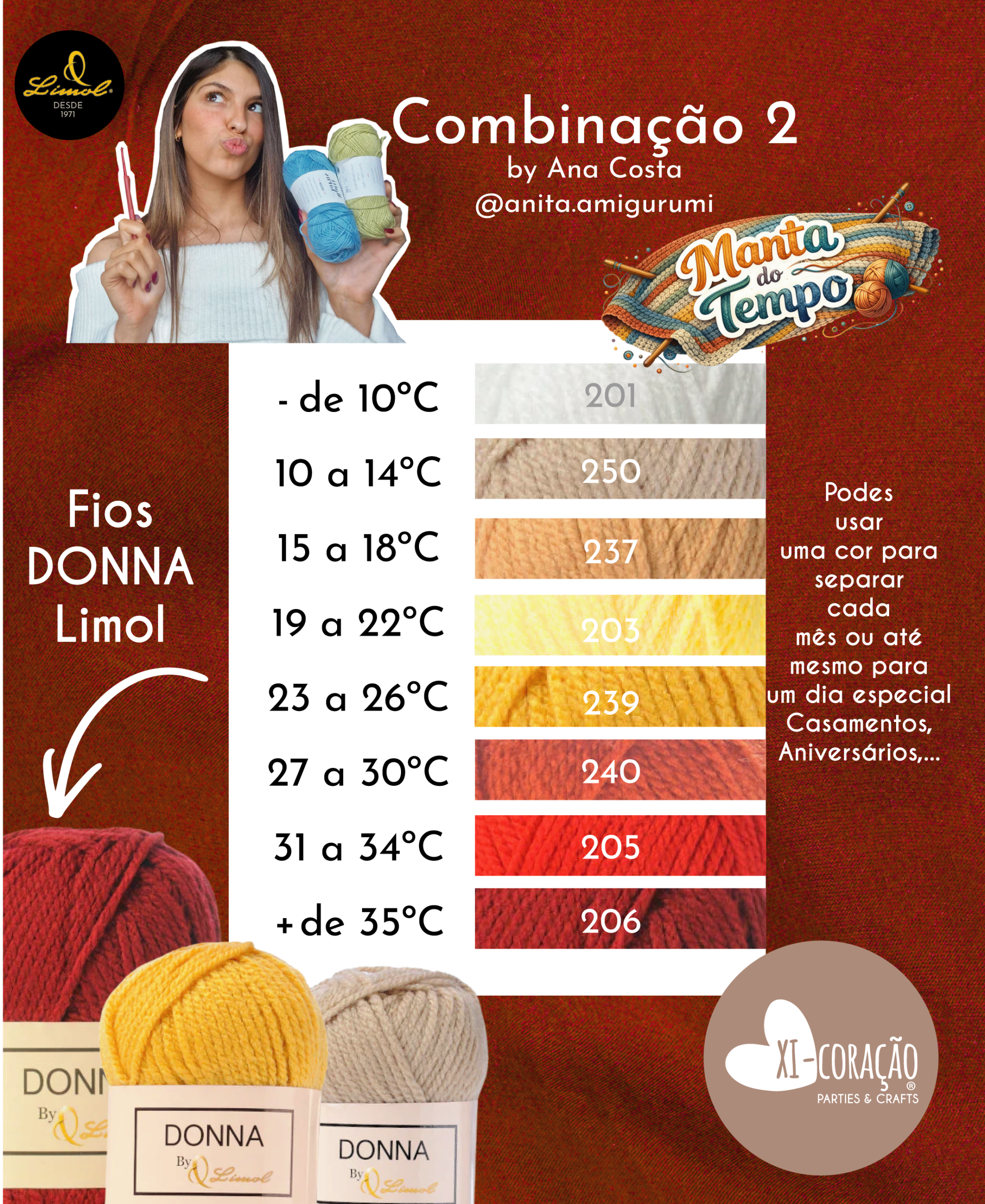 Escolha a combinação de cores que mais gosta e, depois, a quantidade de novelos por cada cor que pretende. Se quiser acrescentar algum novelo de outra cor, clique aqui